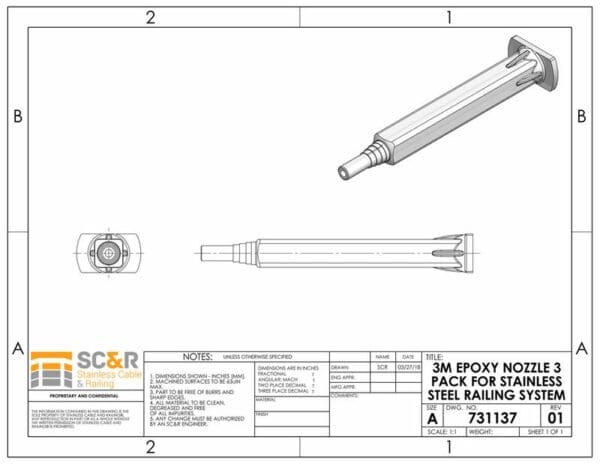 3M EPOXY NOZZLE 3 PACK FOR STAINLESS STEEL RAILING SYSTEM