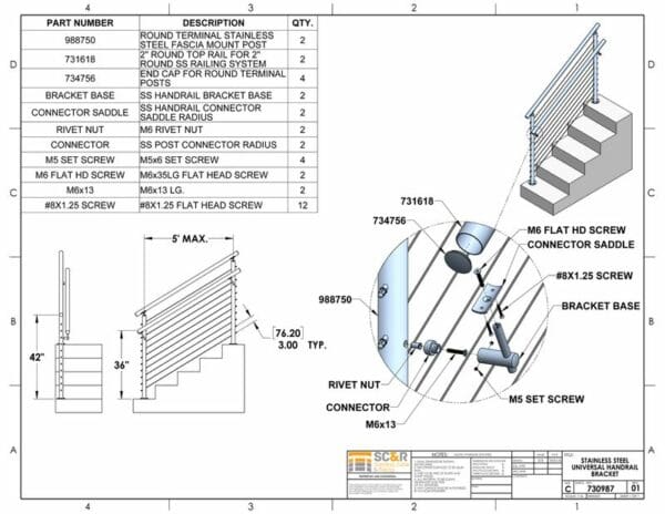 | Handrail Connector | 2in Round Handrail, 2in Round Handrail – 90Deg Corner, Flat Handrail, Flat Handrail – 90Deg Corner |