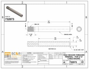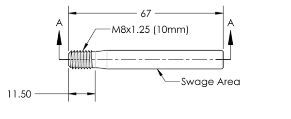 - Size: M8 x 1.25RH for 3/16″ cable or M6 x 1.0RH for 1/8″ cable.