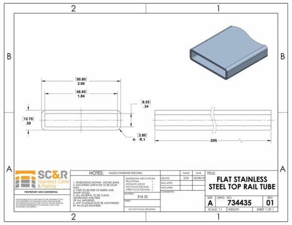 This flat rectangular 20ft tube makes for an incredibly discrete top rail / cap rail.