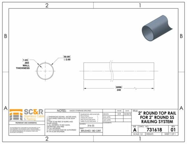 2″ Round Top Rail For 2″ Round Stainless Steel Railing System