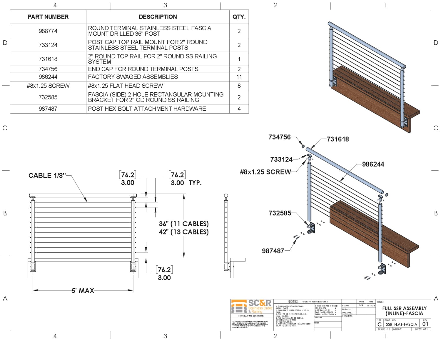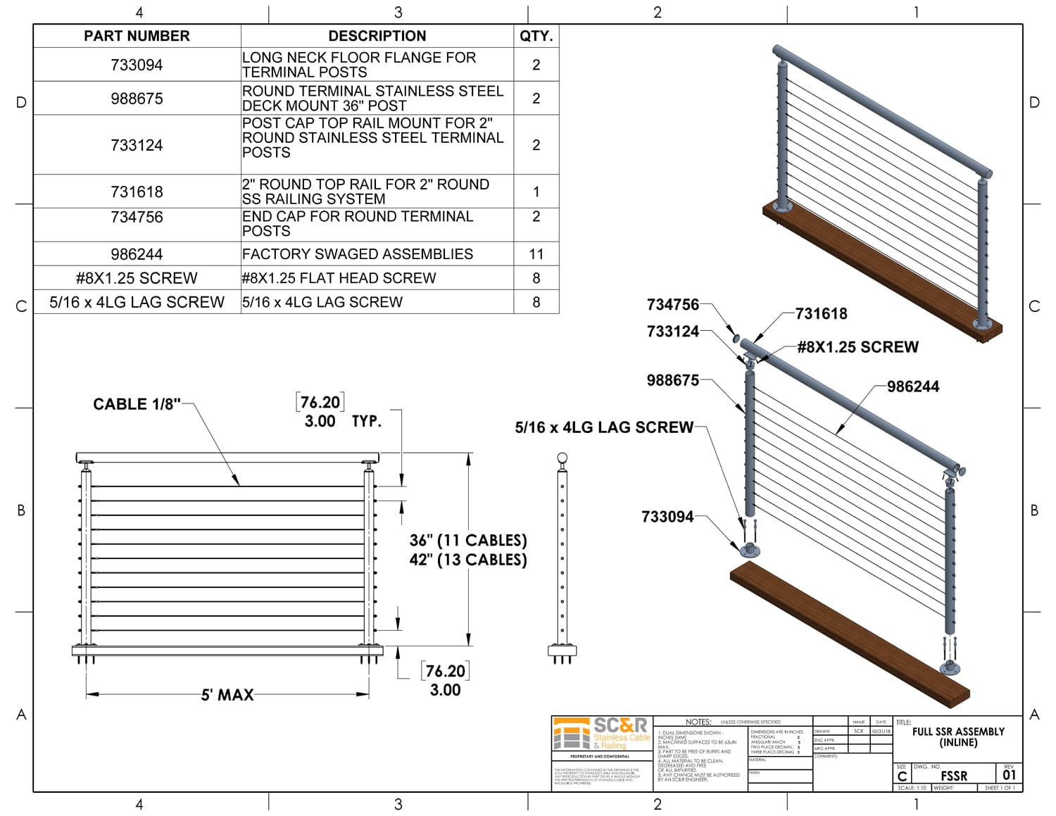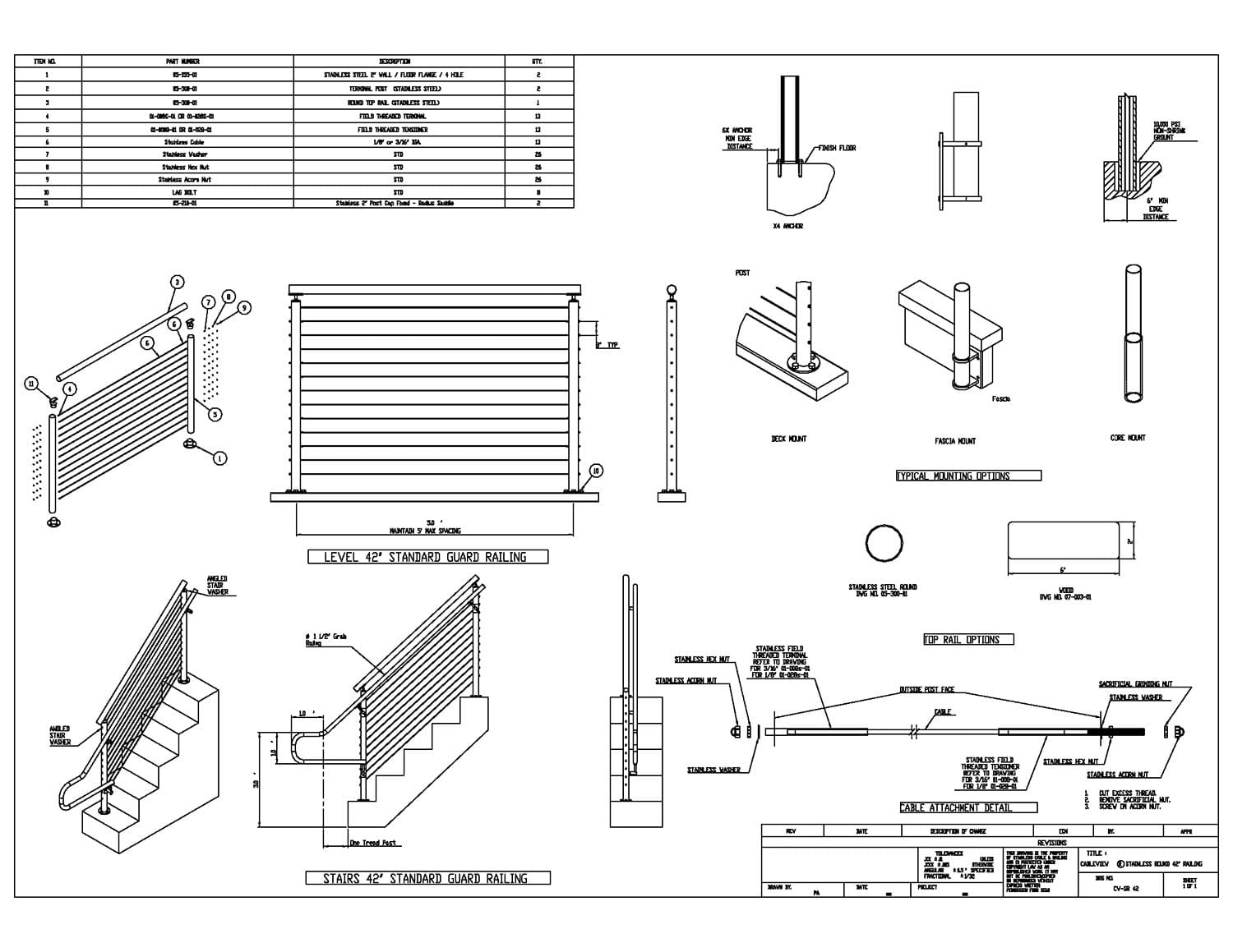 - Top Rail: Stainless Round, Stainless Flat, and/or Wood