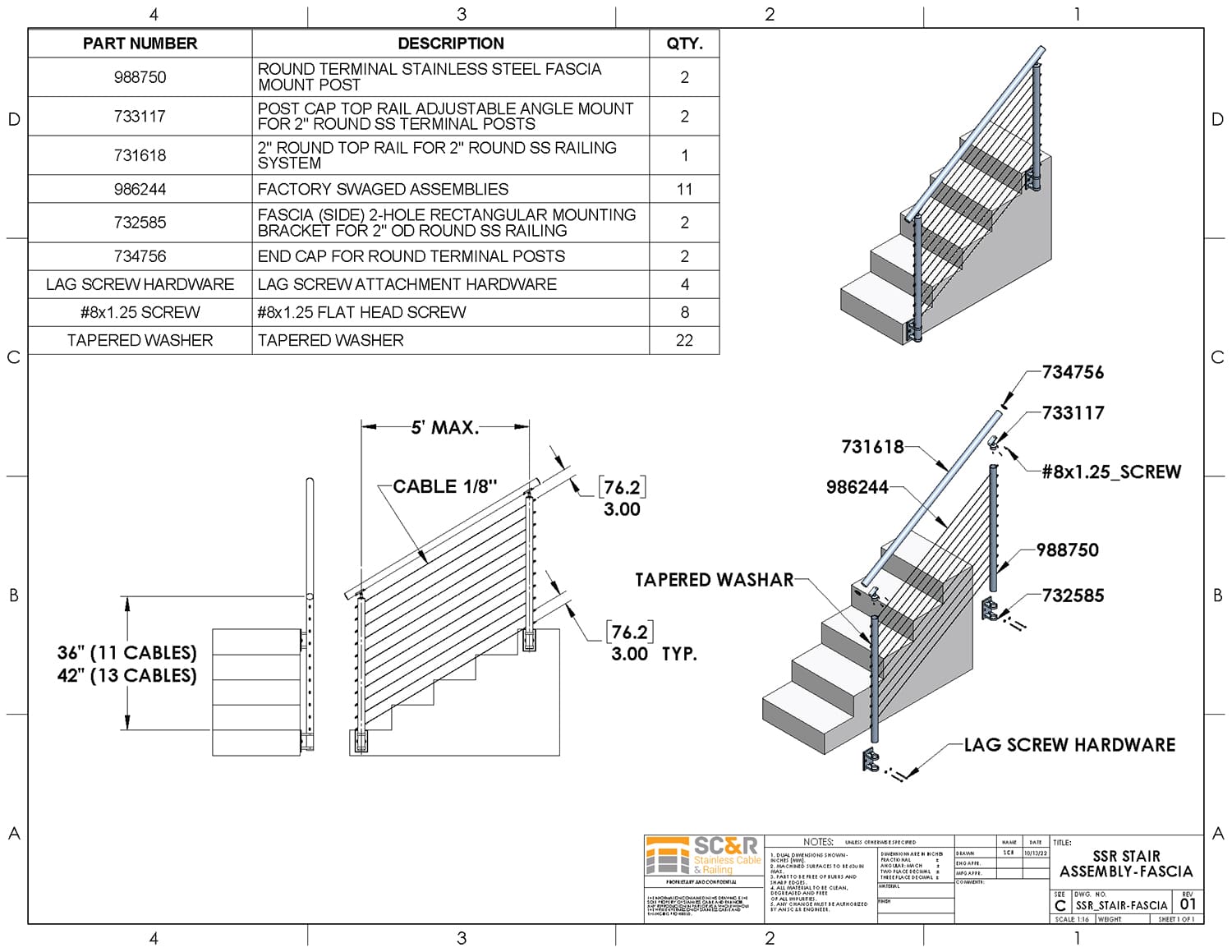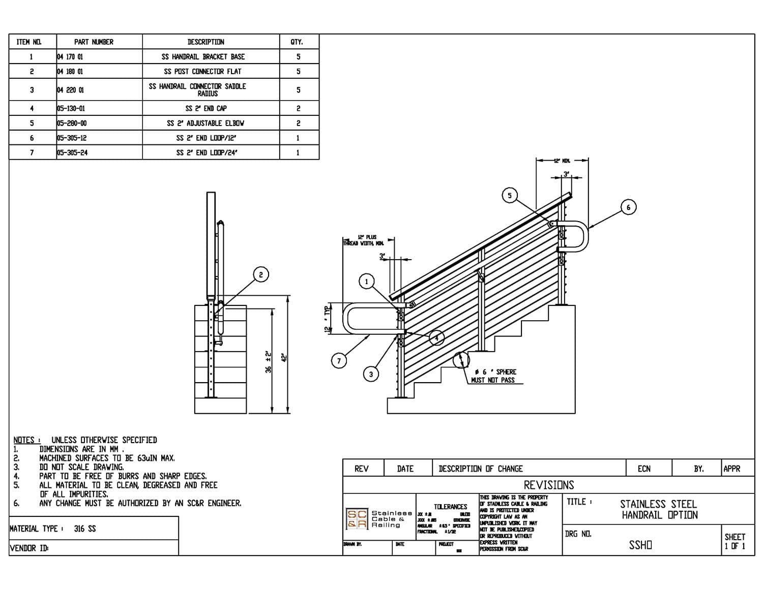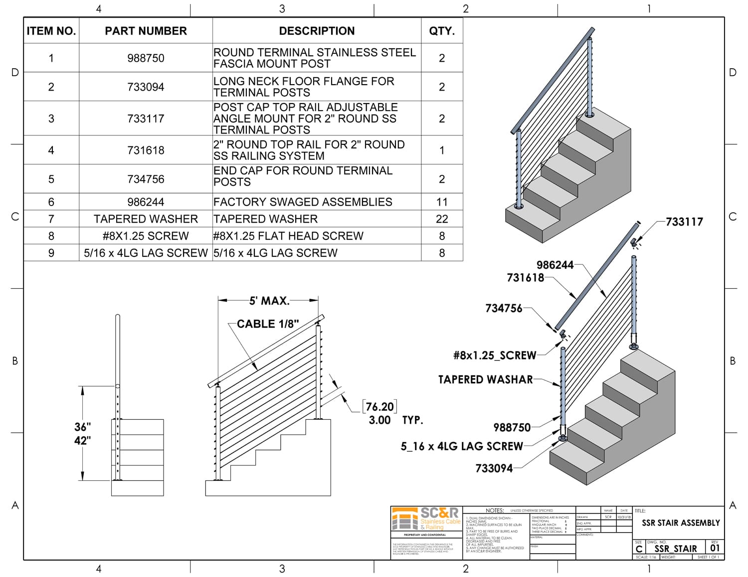 - Top Rail: Stainless Round, Stainless Flat, and/or Wood