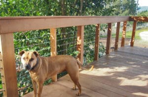 Home » Cable Infill Types » Wood Posts Cable Railing Hardware – Santa Rosa, CA Cable infill keeps this deck in Santa Rosa, CA safe for both human and canine residents without blocking the view. Now the whole family has a perfect spot for barbeques and outdoor lounging! Color & System Top Rail Mounting Style…