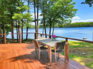 Home » Cable Infill Types » Wood Posts » Page 3 Cable Railing Hardware – Belgrade, ME Cable infill preserves the beautiful view from this expansive deck. Nothing like enjoying your panorama of the lake while eating or lounging with family. Color & System Top Rail Mounting Style Fitting Hardware Customer-Supplied Customer-Supplied Deck & Fascia…