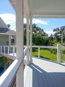 Home » Cable Infill Types » Wood Posts » Page 3 Cable Railing Hardware – Bay Saint Louis, MS Decks and catwalks wrap around the second story of this property in Bay Saint Louis, MS. Cable infill keeps the walkways open and spacious. Color & System Top Rail Mounting Style Fitting Hardware Customer-Supplied Customer-Supplied Deck…