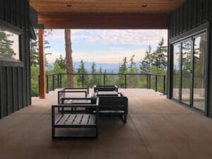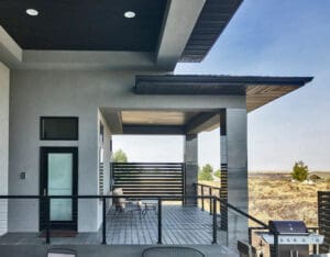 Home » Colors » Black » Page 4 Black Aluminum Cable Railing – Ellensburg, WA Black cable railing lines this slope-facing deck on a contemporary home in Ellensburg, WA. With an open view of the trees and sky beyond, residents resting in the covered lounge area can easily enjoy moody sunsets like this one. Color…