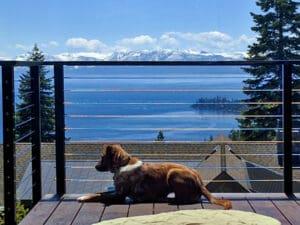 Home » Colors » Black » Page 4 Black Aluminum Cable Railing – Incline Village, NV Our black aluminum posts and stainless steel fittings perfectly frame this beautiful view of a mountain range in Nevada and the expansive lake in front of it. The view’s so stunning that even this homeowner’s dog can’t help but…
