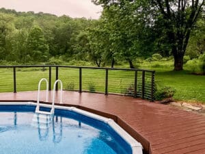 Home » Colors » Bronze Bronze Aluminum Cable Railing – Millersburg, OH This elevated pool and the patio surrounding it required a railing for family safety, but the homeowners didn’t want the pool area to feel too closed off from the rest of the yard. Our bronze cable railing was the perfect solution! Features &…