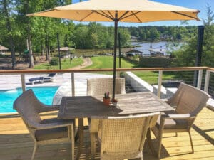 Home » Colors » Natural Natural Aluminum Cable Railing – Jonesboro, GA Bathed in Georgian sunshine, this welcoming deck maintains its open view of the pool and dock beyond thanks to our cable railing. A natural aluminum frame provides visually-subtle safety while catching the sunlight in a way to makes the entire backyard area sing…
