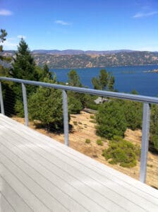 Home » Colors » Natural Natural Aluminum Cable Railing – Kelseyville, CA With a stunning panorama of a nearby lake, this deck in Kelseyville, CA needed an open railing that would enhance the view, rather than block it. Our natural aluminum frame matches the deck nicely, while our cable infill disappears against the backdrop. Color…