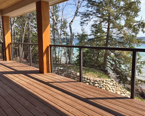 - Fascia mount posts are attached to the side, rather than surface of the deck, keeping the area open and spacious.