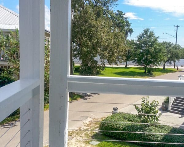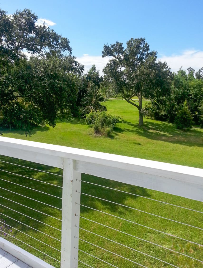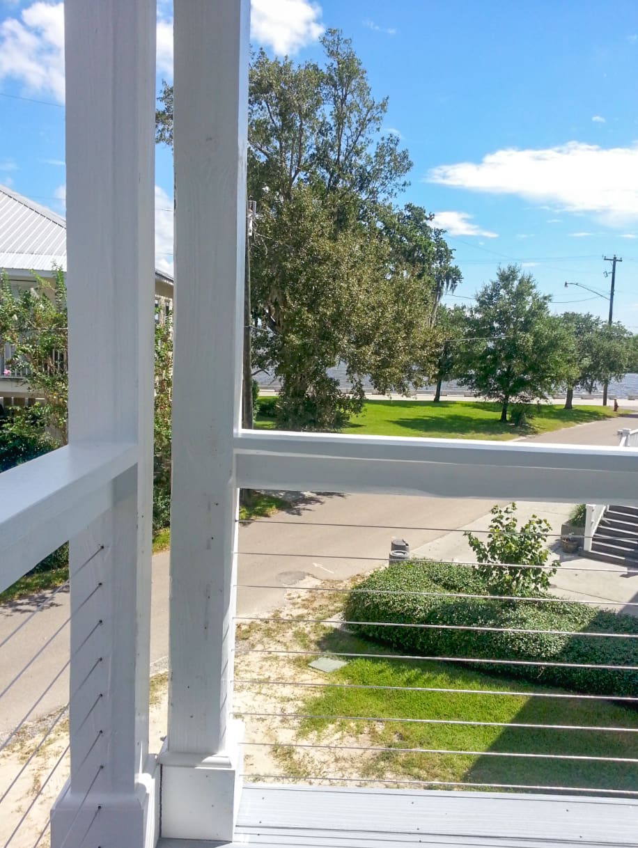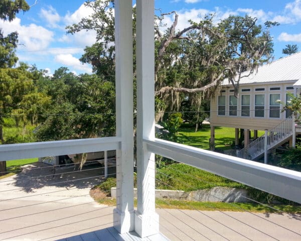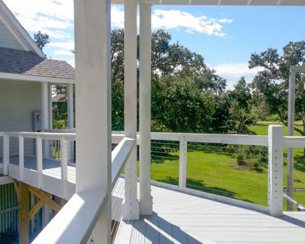 Decks and catwalks wrap around the second story of this property in Bay Saint Louis, MS. Cable infill keeps the walkways open and spacious.