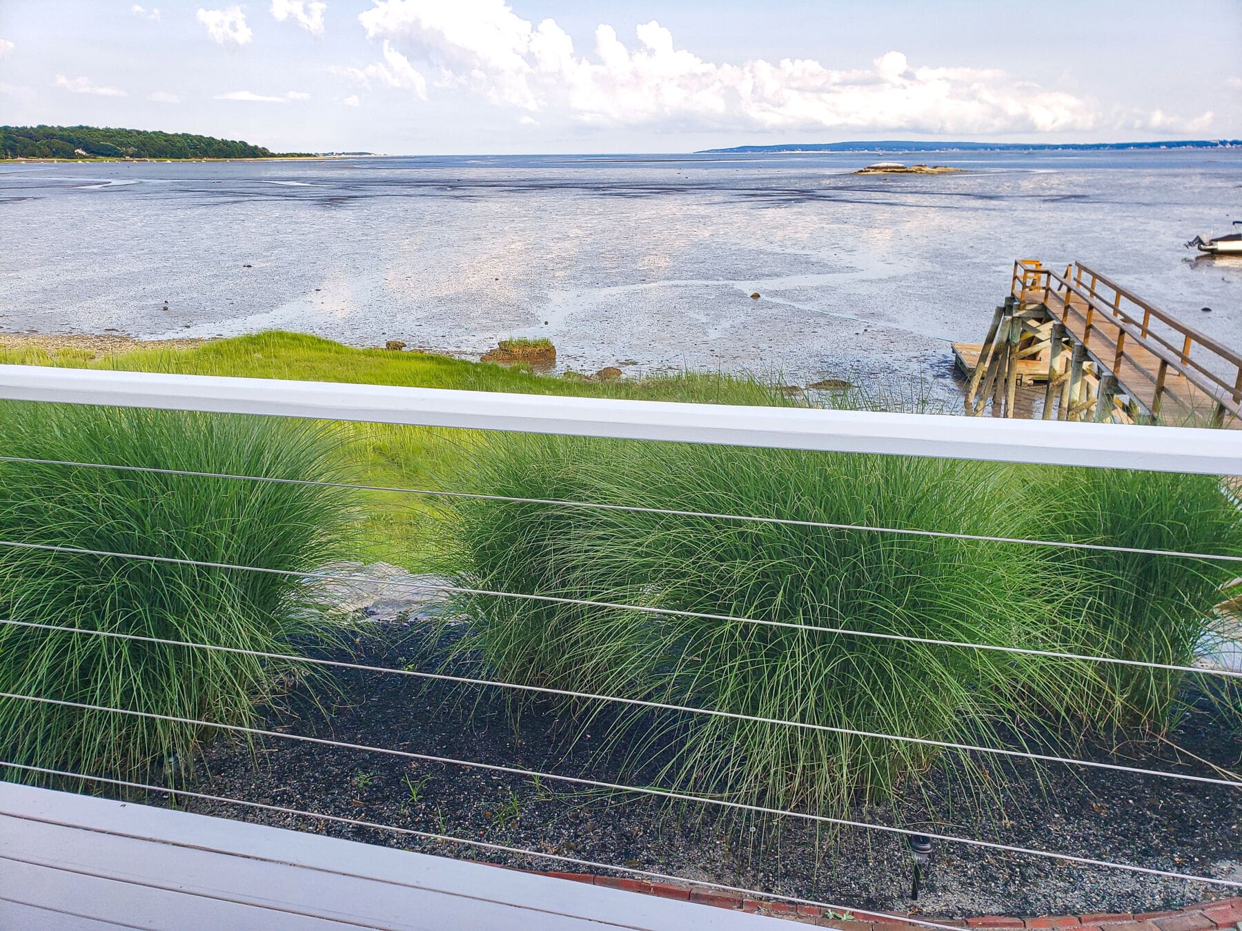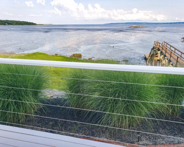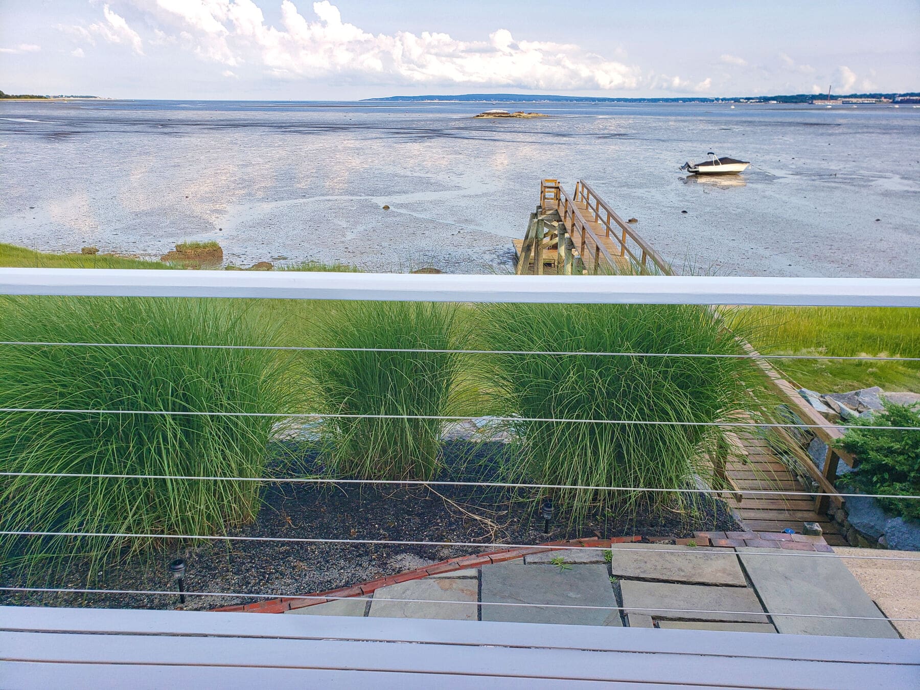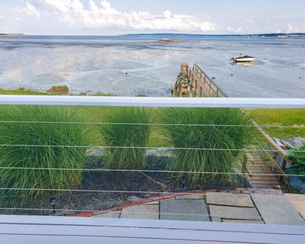 Cable infill keeps the view of the water and dock open for backyard enjoyment.