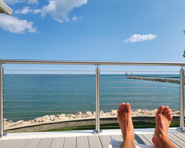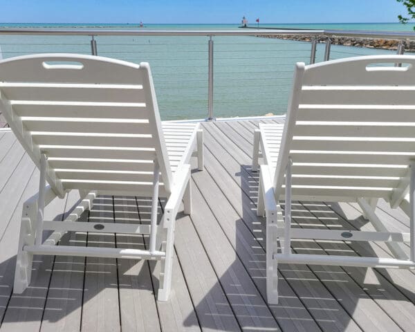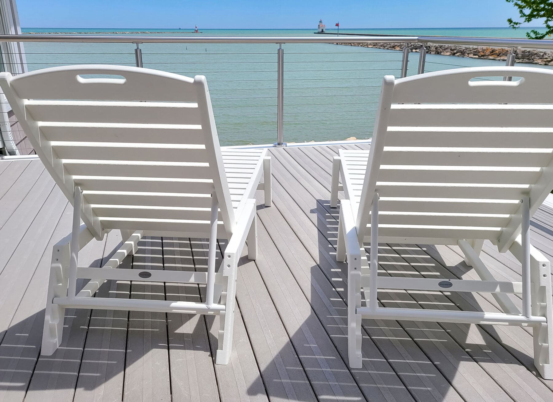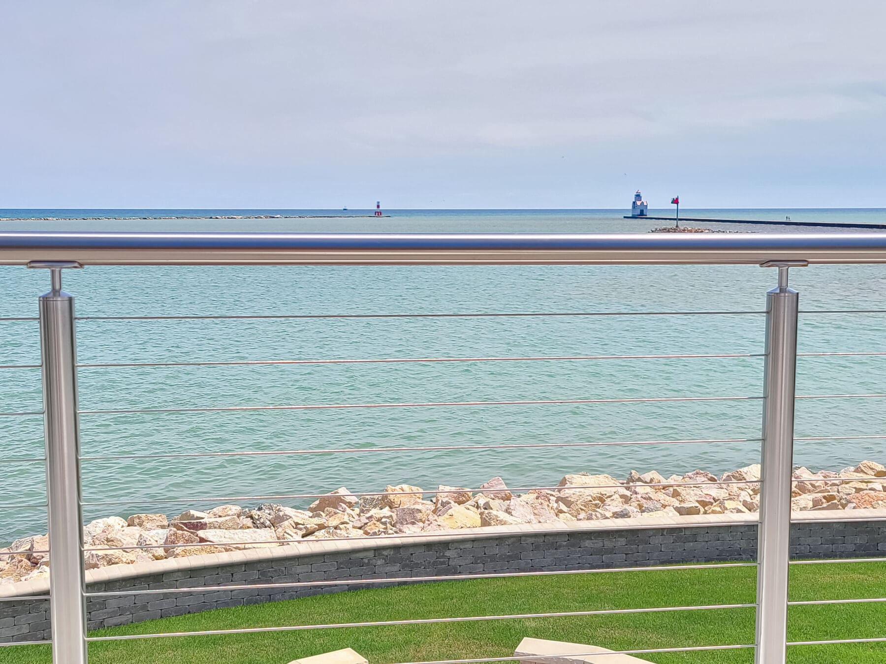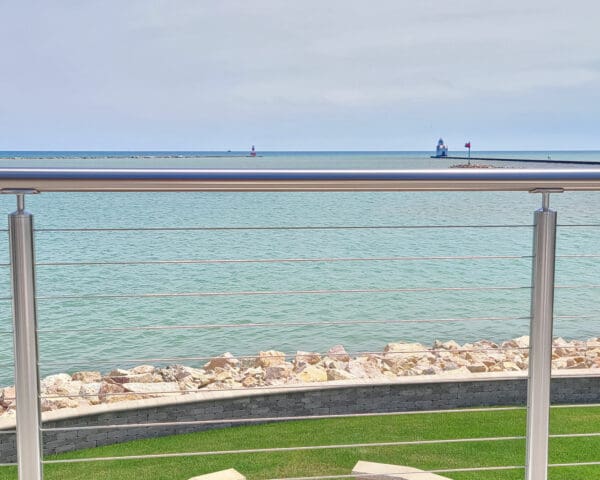 Lounging by the Great Lakes has never been more enjoyable than with our cable railing system on this waterside deck in Kewaunee, WI. The round stainless steel adds to the nautical flavor, perfect for sun bathing by the water and enjoying the view.