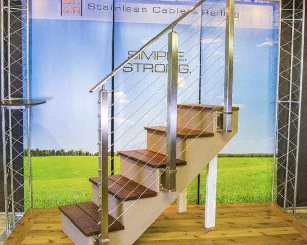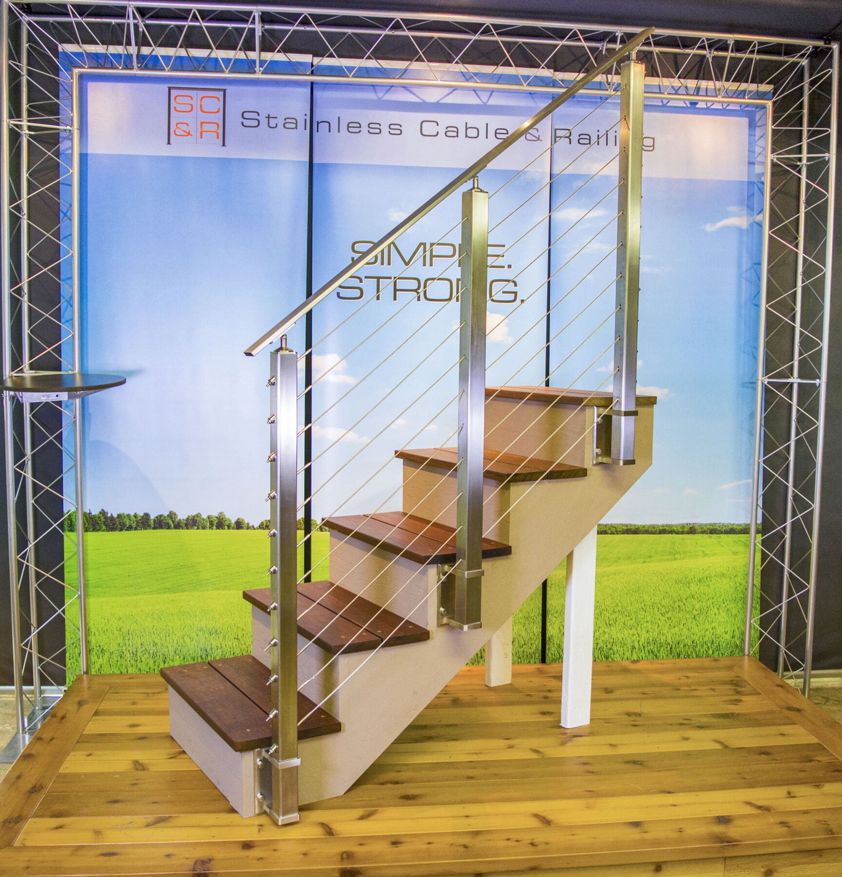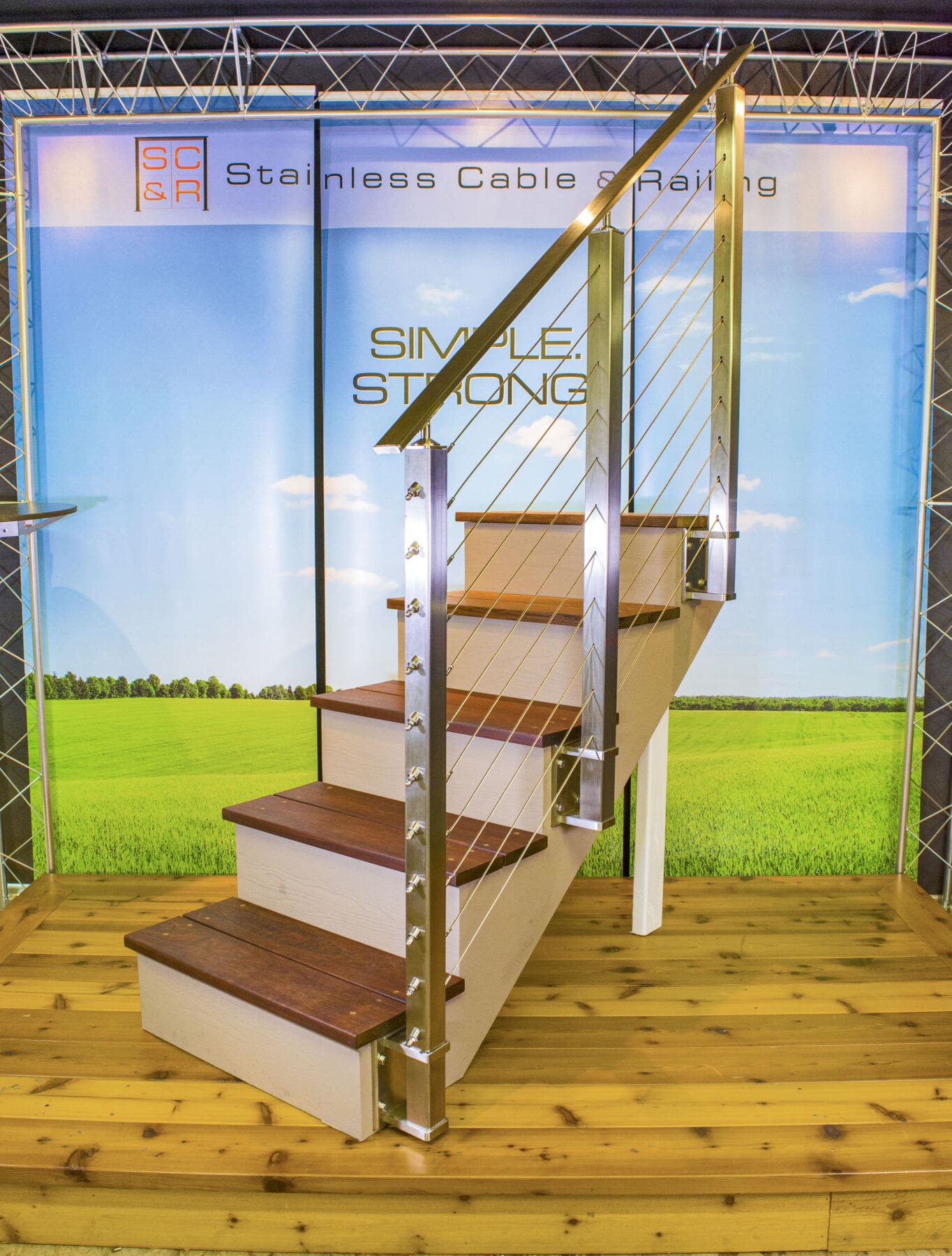 This staircase and railing was built by our own employees here in our warehouse as part of a cable railing installation video. The end result is gorgeous and the video we made shows the full installation process.