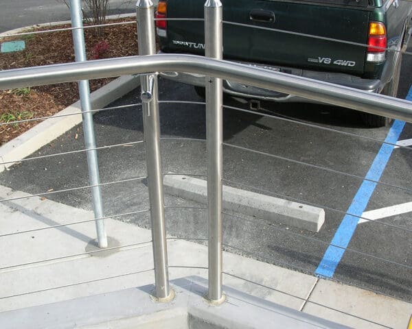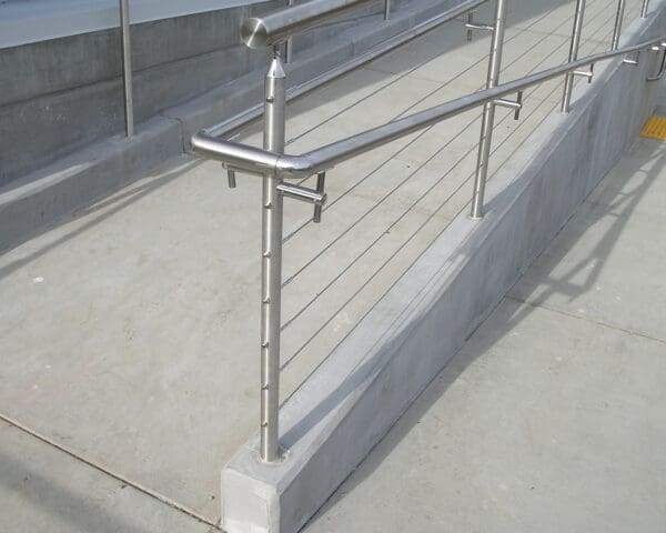 • Stainless Handrail matches the rest of the system and attaches to the posts, running parallel to the top rail, but at a more comfortable height.