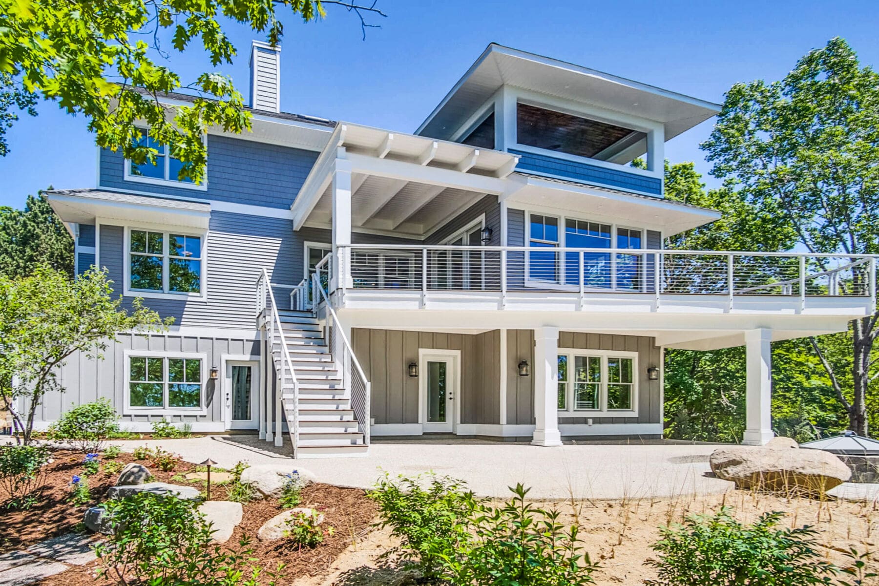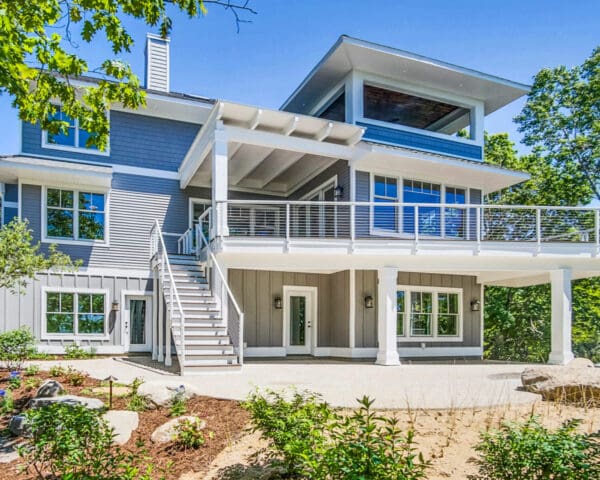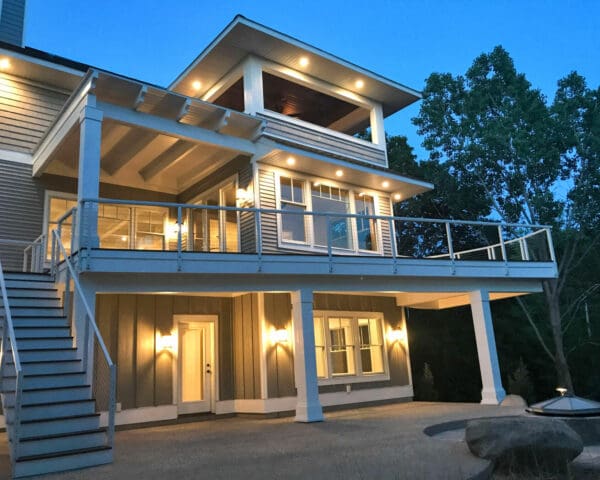 The white color, rectangular shape, and clean lines of our white aluminum cable railing system perfectly blend with the architecture and trim of this contemporary home.
