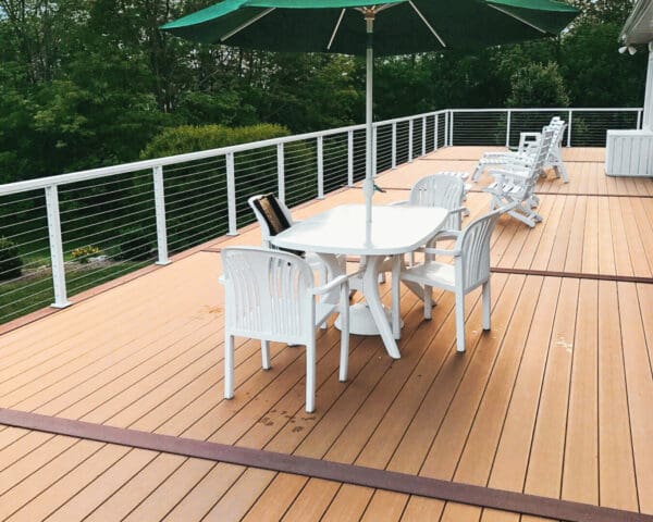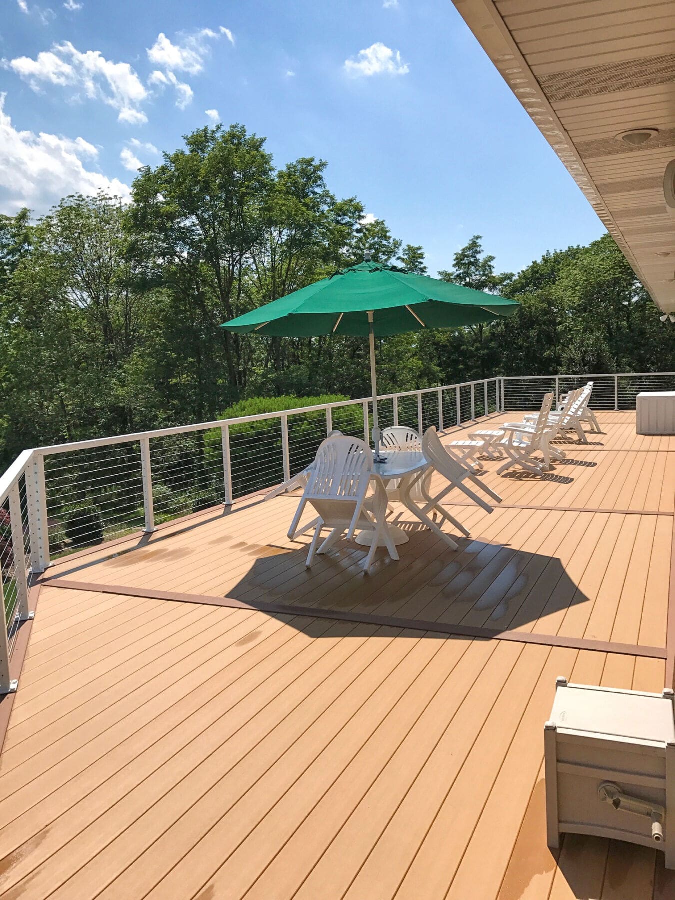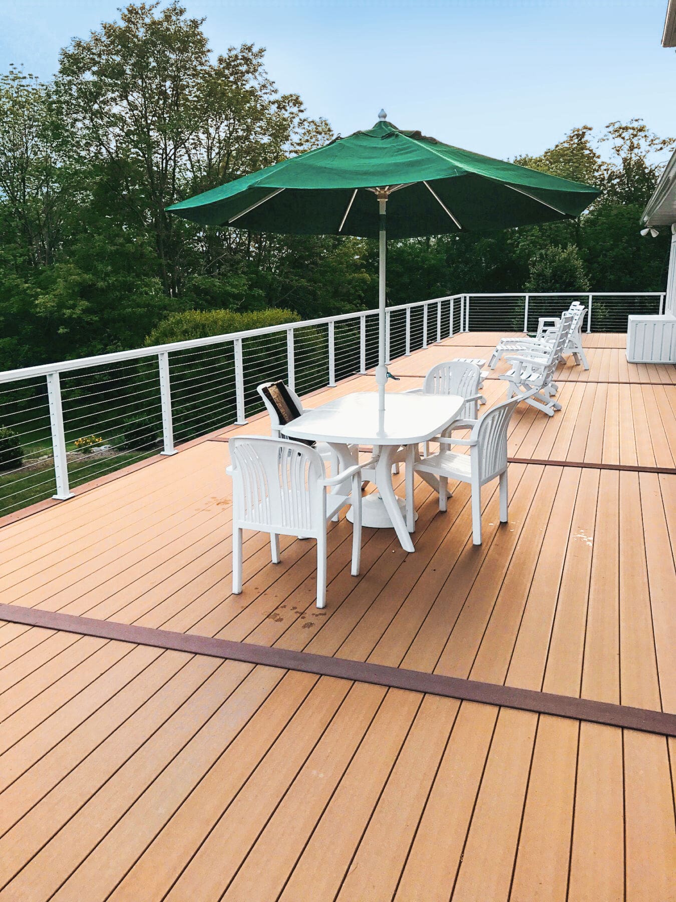 This home in New Ringgold, PA had an extensive, multi-level deck in need of replacing. The upper deck and staircase were redone and completed with a refreshing white aluminum cable railing system. The lower deck was later removed to further open up the backyard and view. Custom corners were a necessity for this particular deck, due to its unique shape.