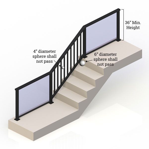 There are different codes to follow depending on whether you are installing glass railings in a residential (either a one or two-family dwelling) or commercial or multi-family residential building. The model code for a residential building is the International Residential Code (IRC), while the model code for commercial buildings is the International Building Code (IBC). Both of these model codes are updated every three years and fall under the International Code Council (ICC), providing minimum safeguards for people at home, school, and in the workplace.