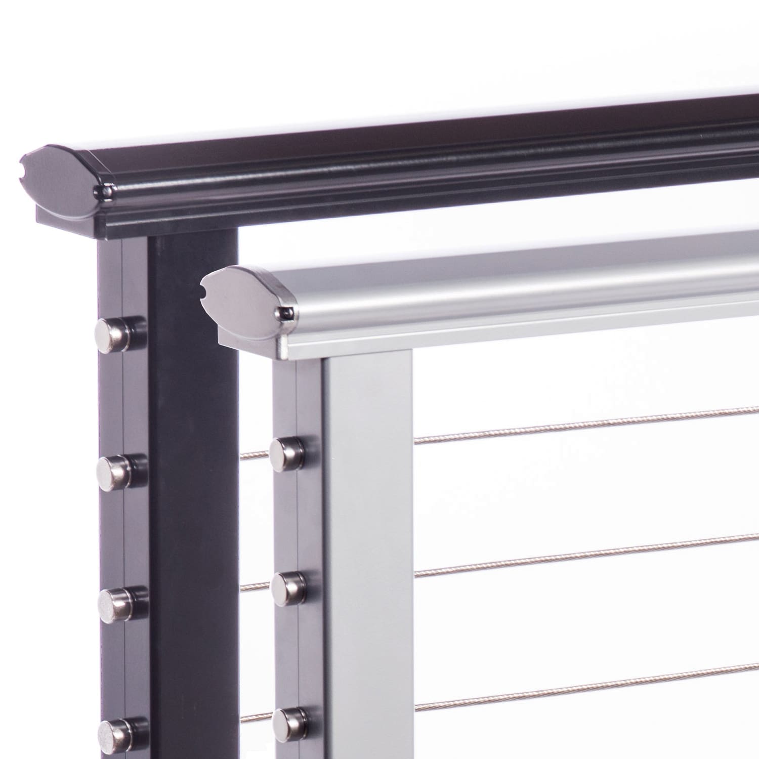 These top rails are made with the same material as our aluminum posts, but with a rounded shape, perfect for running your hand along. Lacking the angles of a traditional rectangular top rail, this makes for a softer, smoother appearance. This section also contains corner pieces, splices, two different compatible end cap options, and more; Everything you might need for a shaped aluminum top rail. Available in black, bronze, natural, clay, or white like all our aluminum products.