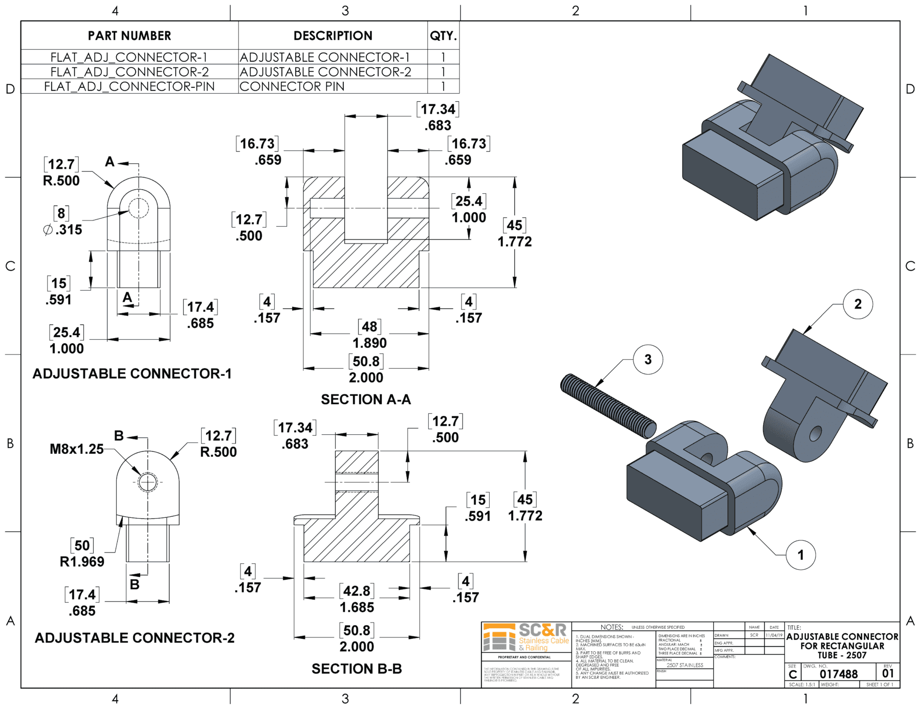 2507 Stainless Steel Adjustable Connector for Flat Top Rail