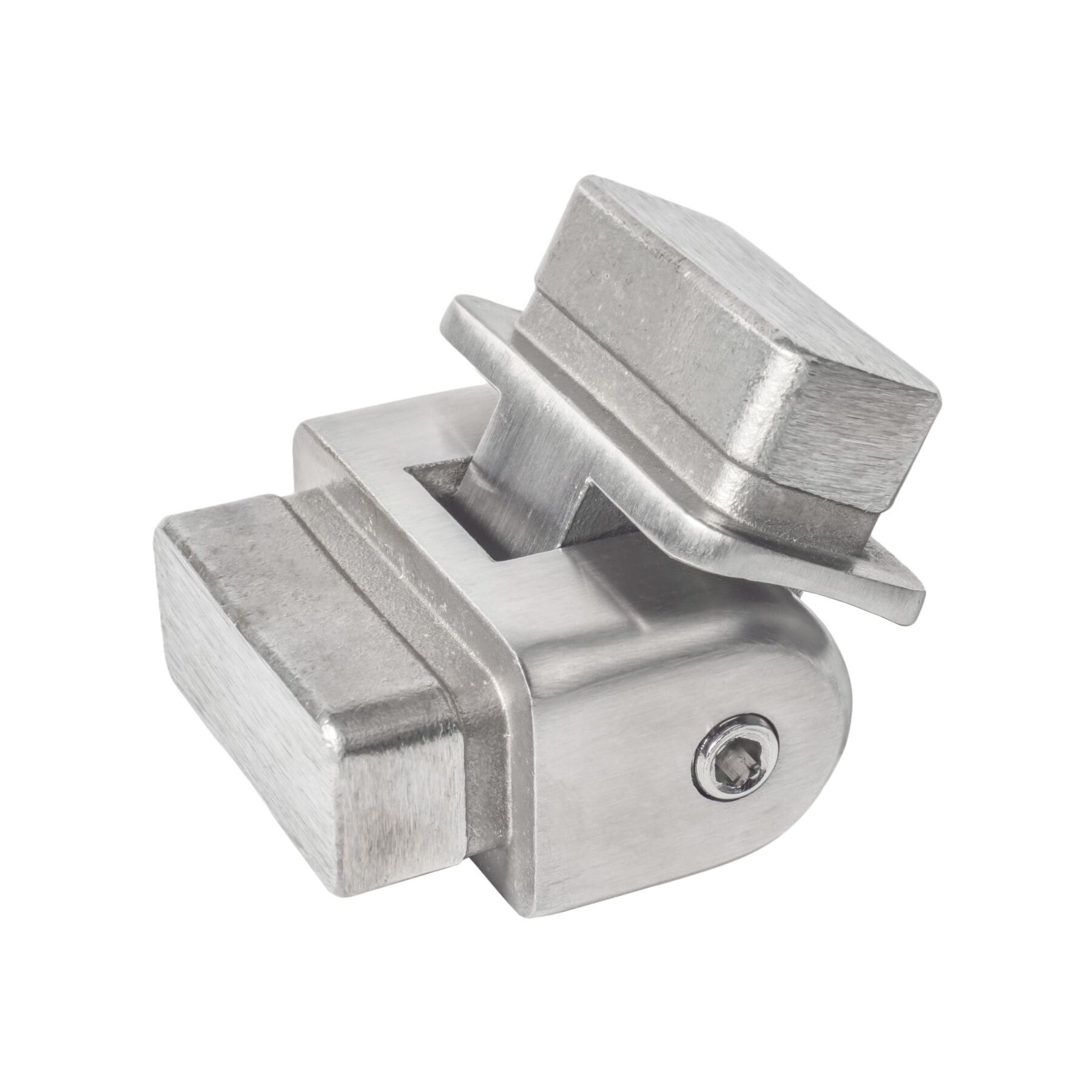 This adjustable connector can be used with any 2507 stainless flat top rail or handrail that has a change in elevation, such as down stairs or ramps.