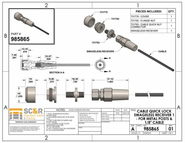 CableQuick® Lock Swageless Receiver 1 – For Metal Posts & 1/8″ Cable