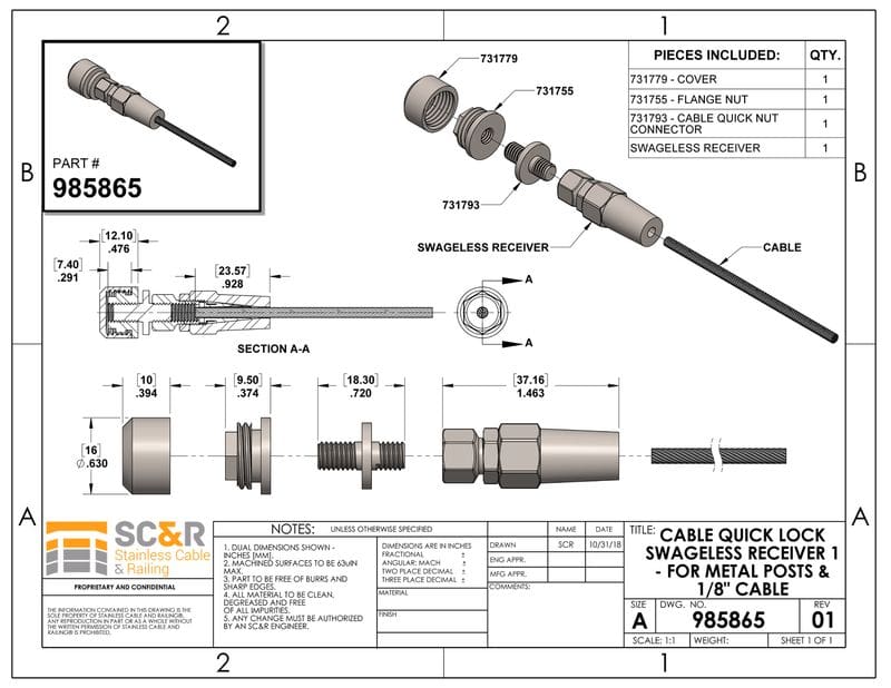 The CableQuick® LOCK SWAGELESS RECEIVER – METAL – 1 is part of our CableQuick® Lock Assembly Type 1. This terminal is available here a-la-cart to be combined with another assembly for METAL POSTS.