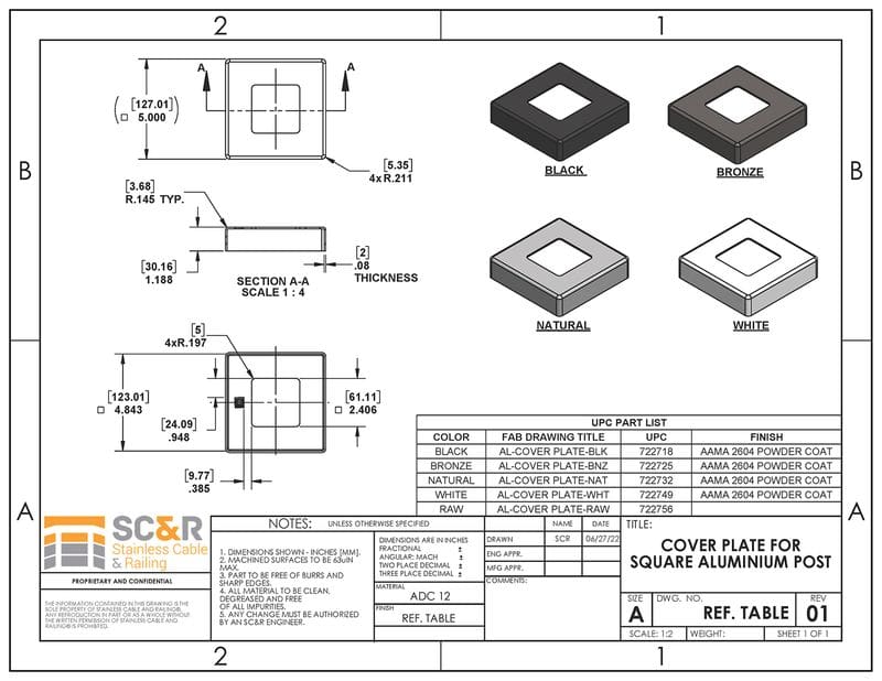 Slide these cover plates over your aluminum cable railing posts to hide the base plate and mounting screw hardware, for a clean finished look. Made using the same material and powder coat as our posts, these plates are an elegant alternative to screw caps.
