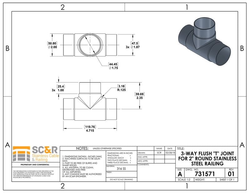 Be the first to review “3-Way Flush “T” Joint for 2″ Round Stainless Steel Railing System”
