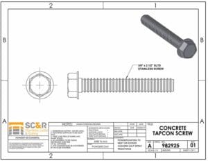Tapcon Screws for Deck Mount onto Concrete Surfaces are Large Diameter Tapcon (LDT) Anchor screws that cut their own threads into concrete. Use to secure aluminum and stainless steel base plates and decks mounts into concrete surfaces.