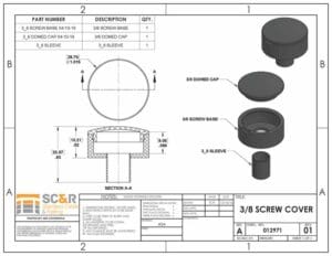 INCLUDES 1ea DOMED CAP, 1ea SCREW BASE, 1ea WASHER (Full Assembly Only), & 1ea SLEEVE (Full Assembly Only)