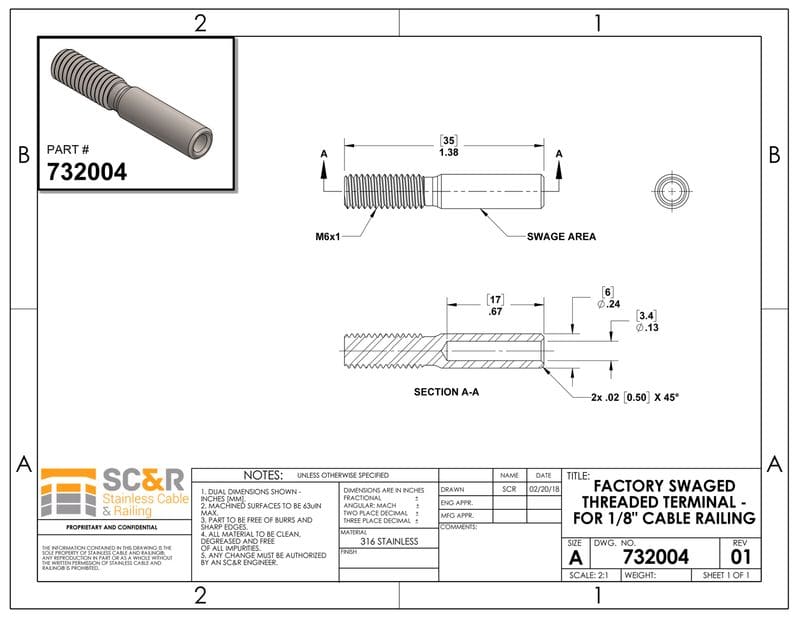 DECK RAILING : FACTORY SWAGED THREADED TERMINAL
