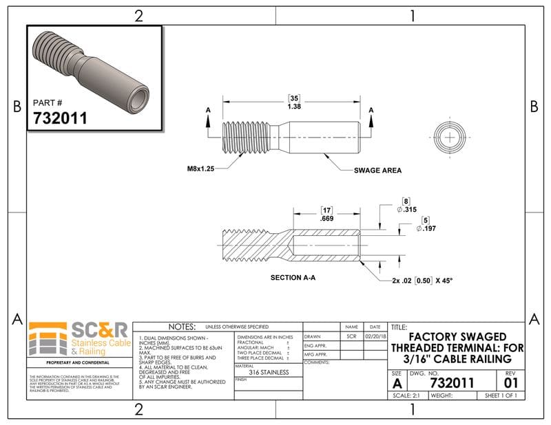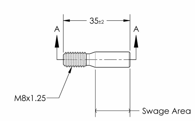 - Size: M8 x 1.25RH for 3/16″ cable or M6 x 1.0RH for 1/8″ cable.