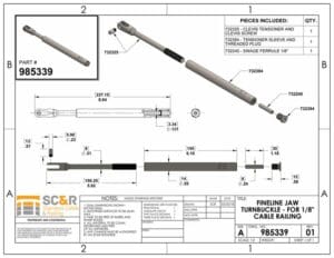 See number “2” in the above drawings to see how the FineLine™ JAW TURNBUCKLE is used in the wire rope cable assembly.