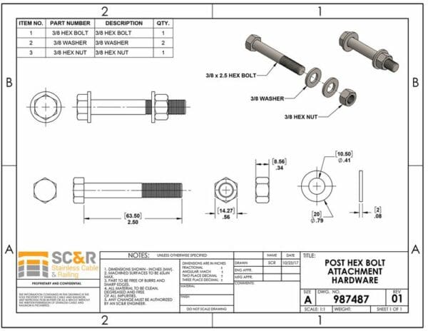 Post Hex Bolt Attachment Hardware
