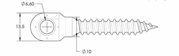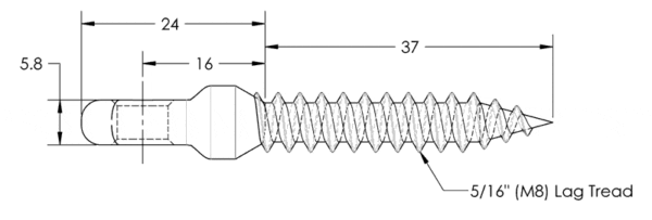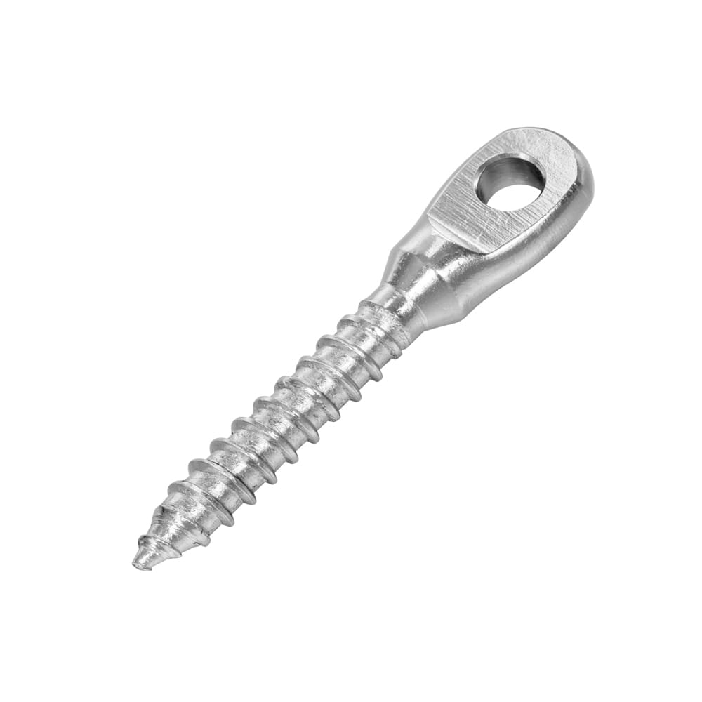 The LAG EYE fittings are the terminal ends of the FineLine™ JAW/WOOD ASSEMBLY. This Assembly requires: 1 FineLine™ JAW TURNBUCKLE, CABLE, FIXED JAW CLEVIS WITH CABLE, and 2 LAG EYE. The number of cable runs is determined by post height. 3″ cable spacing is recommended.