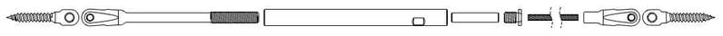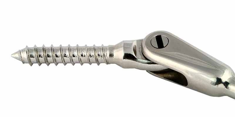 The LAG EYE fittings are the terminal ends of the FineLine™ JAW/WOOD ASSEMBLY. This Assembly requires: 1 FineLine™ JAW TURNBUCKLE, CABLE, FIXED JAW CLEVIS WITH CABLE, and 2 LAG EYE. The number of cable runs is determined by post height. 3″ cable spacing is recommended.