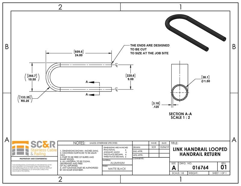 These end loops seal the open ends of your Link Handrail in accordance with most commercial stair/ramp handrail building codes. Use to complete your aluminum handrail.