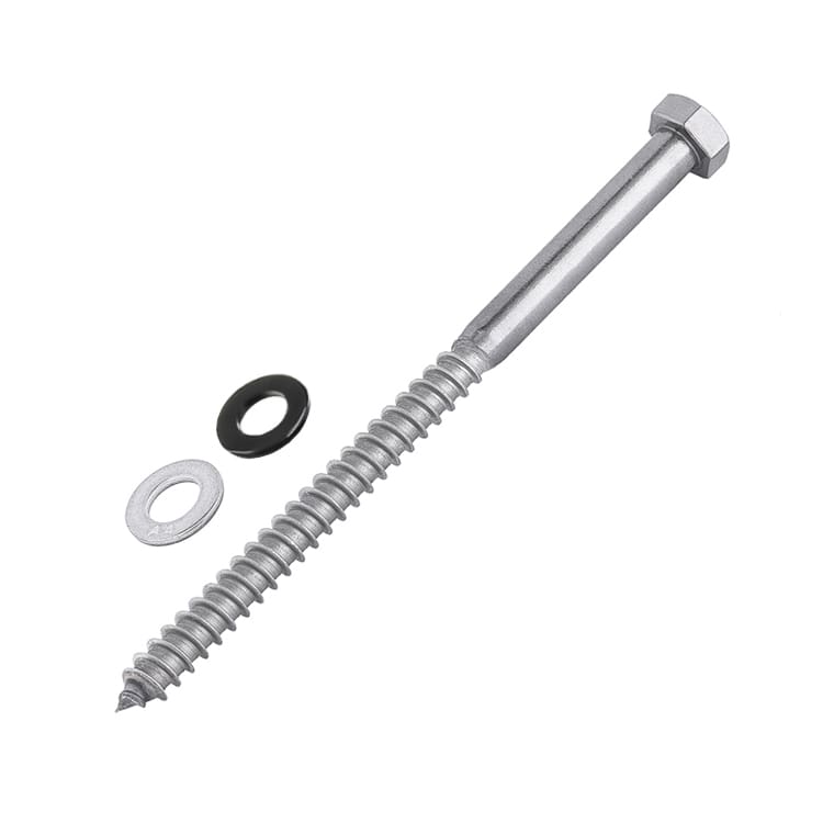 These lag bolts are used for deck mounting posts into wood. Available in three lengths to accommodate your application. Made out of 304 Grade Stainless Steel.