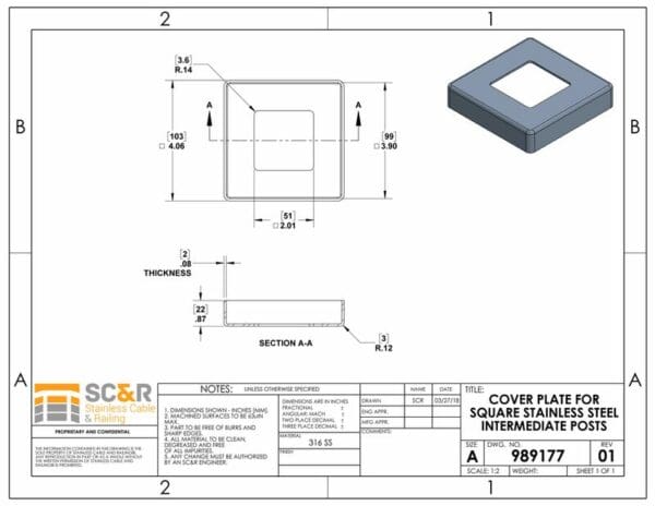 Cover Plate for Square Stainless Steel Intermediate Posts