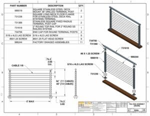 For design assistance, call us any time at 1-888-686-7245 (RAIL) or email [email protected]. Fax us a sketch or fill out the ESTIMATE REQUEST FORM for a free estimate. You might also want to check out our cable railing videos and WORKSHEETS.