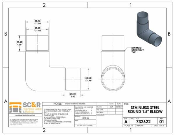 This elbow piece connects two sections of your STAINLESS STEEL ROUND HANDRAIL at a 90degree angle.