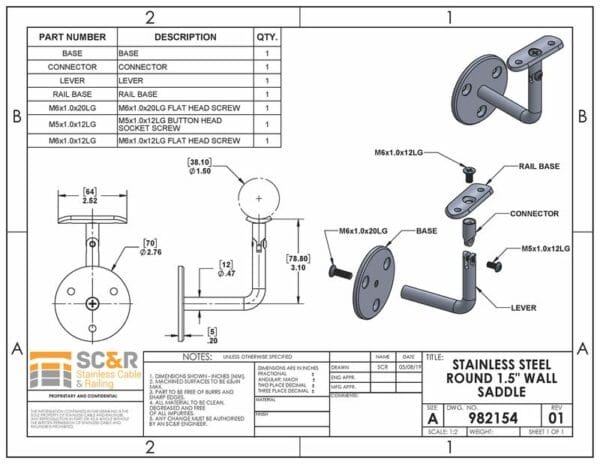 This wall saddle is shaped to support the 1.5″ outer diameter of our Round Stainless Steel Handrail.