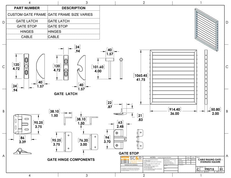 This kit includes a custom-built pre-swaged gate made from the same square stainless steel as our railing posts. Included with the gate itself are all the hardware pieces necessary for attaching and closing your gate.