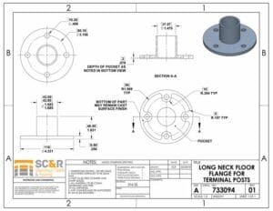This long neck flange can be used to deck mount 2in. OD Round Stainless Steel TERMINAL posts to the floor.