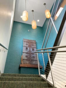 Home » System Types » Stainless Steel (Round) Stainless Steel Round Cable Railing – Honolulu, HI Round stainless steel cable railing adorns the stairwell of this chic tours & attractions office in Honolulu, HI. The smooth, cylindrical shape of the tubes paired with aqua walls creates a lovely nautical aesthetic that perfectly fits the themes…