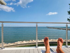 Home » System Types » Stainless Steel (Round) Stainless Steel Round Cable Railing – Kewaunee, WI Lounging by the Great Lakes has never been more enjoyable than with our cable railing system on this waterside deck in Kewaunee, WI. The round stainless steel adds to the nautical flavor, perfect for sun bathing by the water…