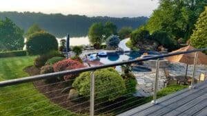 Home » System Types » Stainless Steel (Round) Stainless Steel Round Cable Railing – New City, NY Nothing says “Summer Fun” like an extensive pool area and deck overlooking the river. Cable railing keeps the second-story view open and contemporary. The customer-supplied top rail and embedded lighting allow for safe enjoyment of the outdoors well…